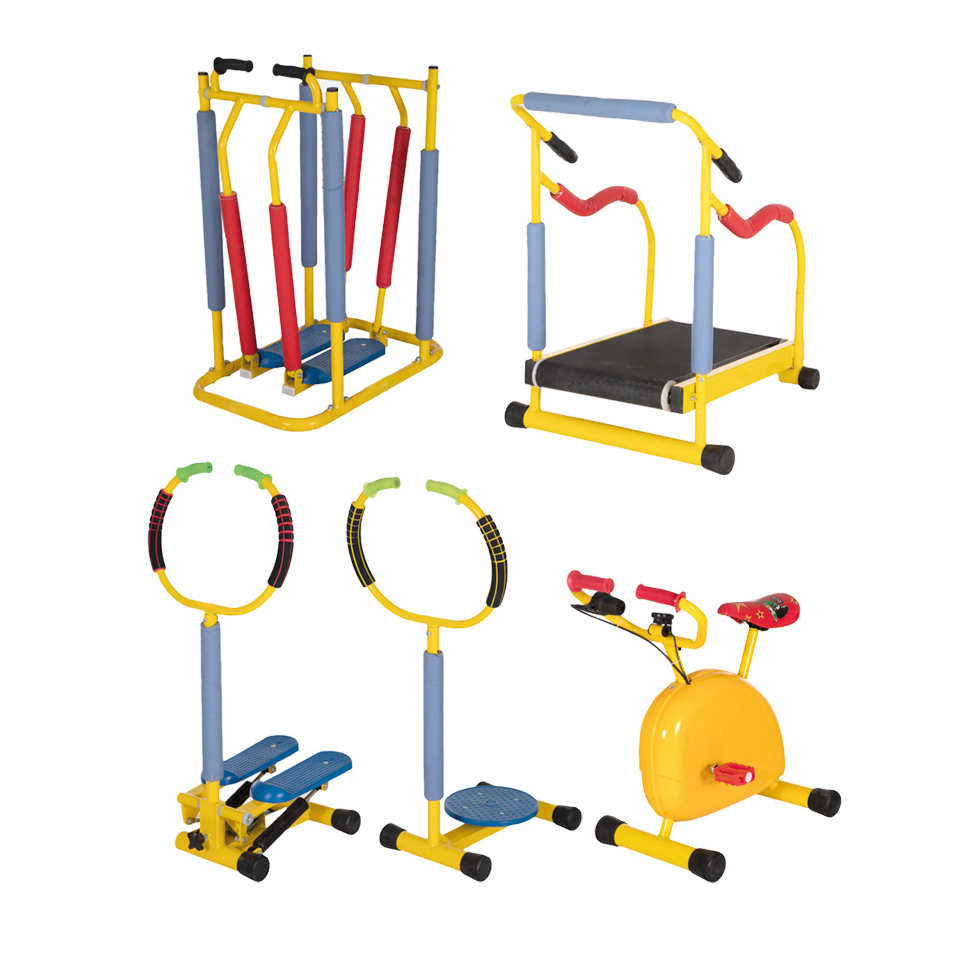 لوازم ورزشی فلزی کودک 5 تکه (تردمیل+دوچرخه،اسکی فضایی، اولپتیکال+ مسگری)